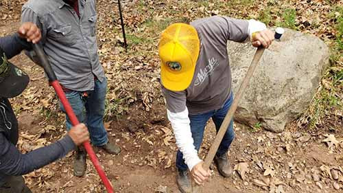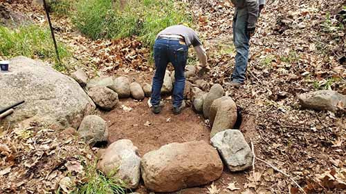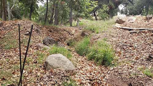 Repairing erosion zones by moving boulders and other rocks into simple yet creative bowl shapes that catch sediment and grow natural root structures with native plants.
